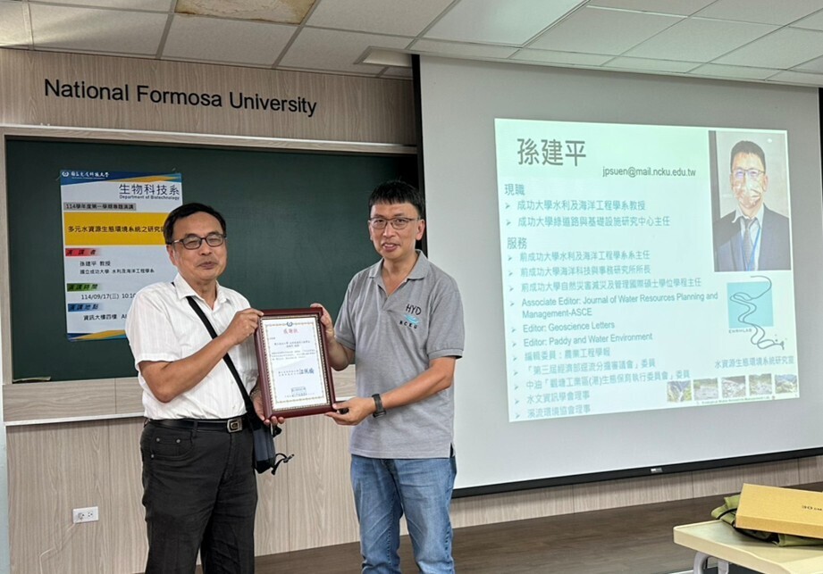 114年09月17日 專題演講:多元水資源生態環境系統之研究與應用