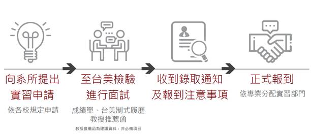 l 申請方式:(隨信檢附實習申請相關說明、台美制式履歷表以及面試問題回覆)